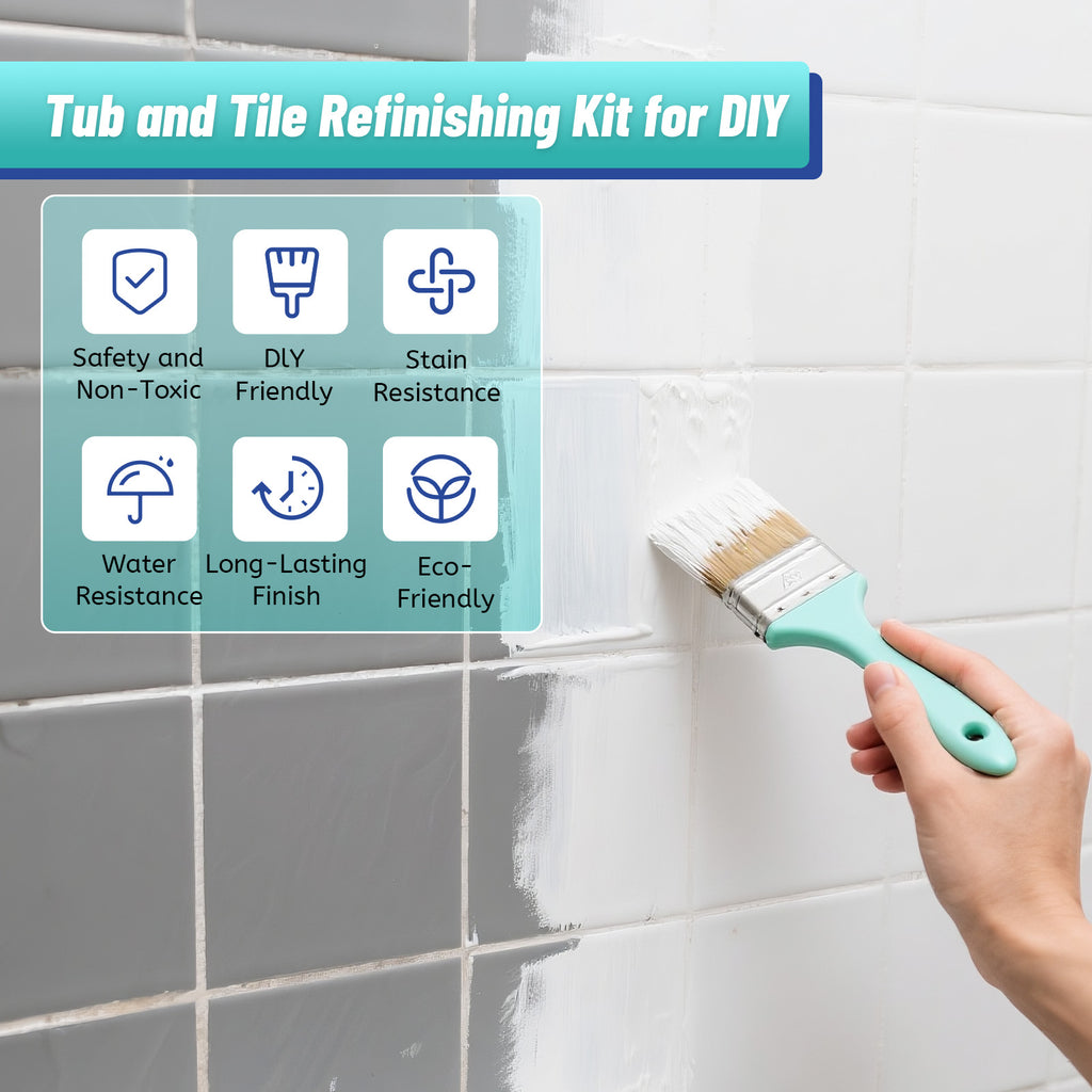 [LOW ODOR & ECO-FRIENDLY FORMULA] Our water-based tile paint contains minimal VOCs and low odor, perfect for indoor bathroom and kitchen projects. Free from harsh chemicals, this environmentally-friendly bathtub coating requires less ventilation time and provides a comfortable application experience while prioritizing safety.