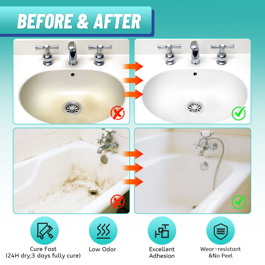 [QUICK APPLICATION & FAST DRYING] Complete tile restoration efficiently with our fast-drying formula. The tub refinishing paint cures in 24 hours and fully hardens in just 3 days. Included tools ensure smooth coverage—a complete bathroom paint solution for DIY renovations with professional-quality results.