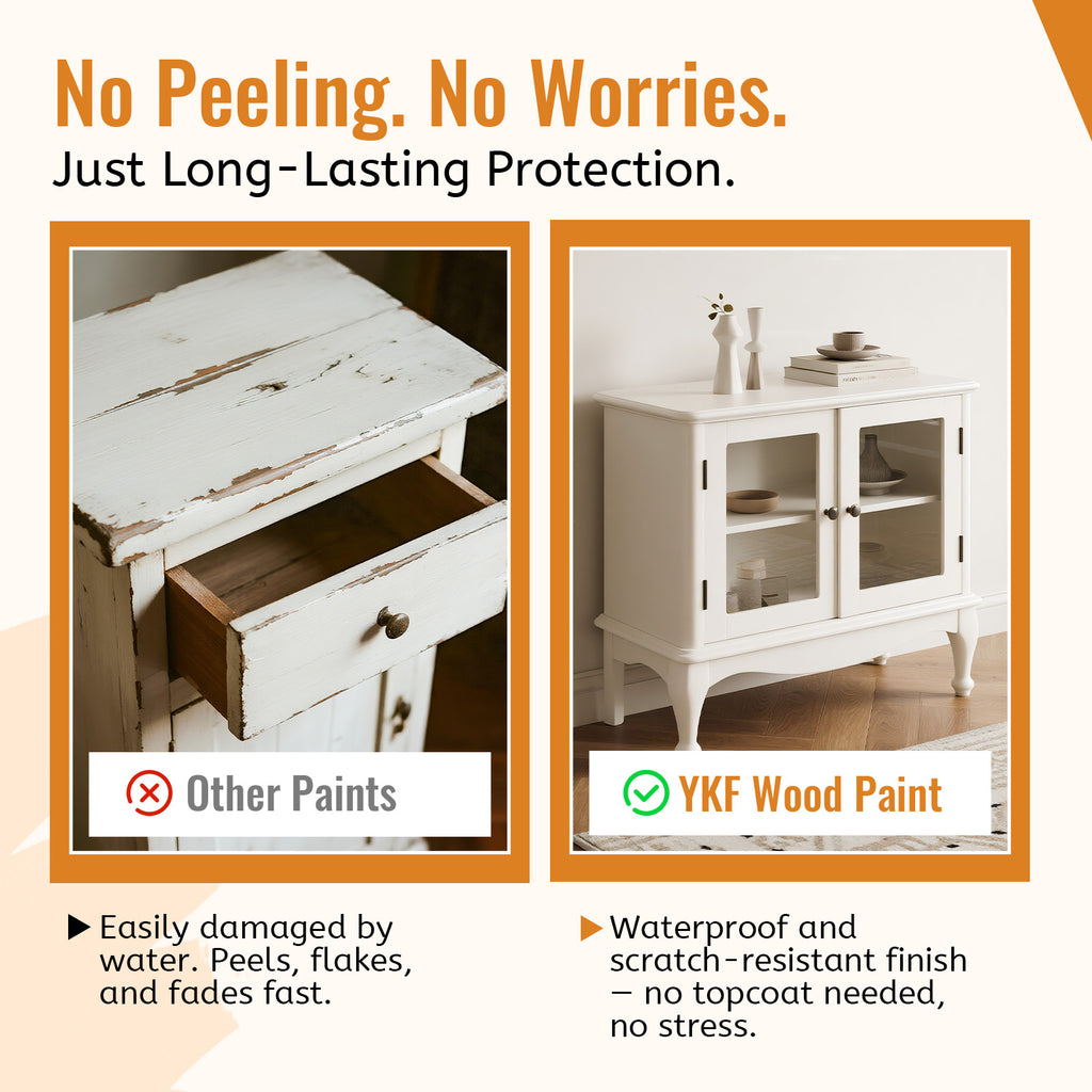 DURABLE & LONG-LASTING FINISH - YKF wood furniture paint creates a tough, long-lasting surface with excellent adhesion. It delivers smooth, full coverage with minimal prep and resists scratches, peeling, and daily wear—perfect for high-use wooden furniture like cabinets and tables.