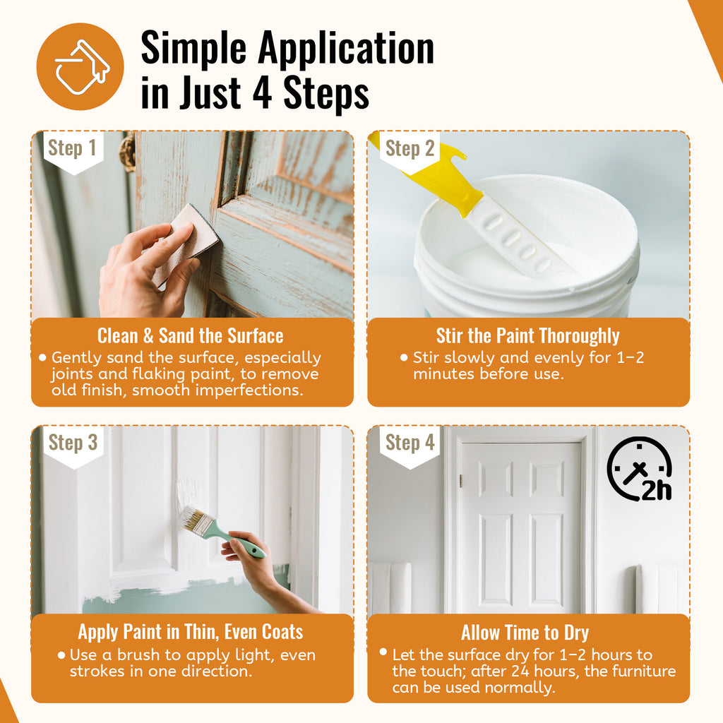 PERFECT FOR DIY FURNITURE MAKEOVER - This wood furniture paint is perfect for repainting tables, chairs, cabinets, doors, and wardrobes. It's great for DIY projects like refinishing or changing the color of wooden or rattan furniture.